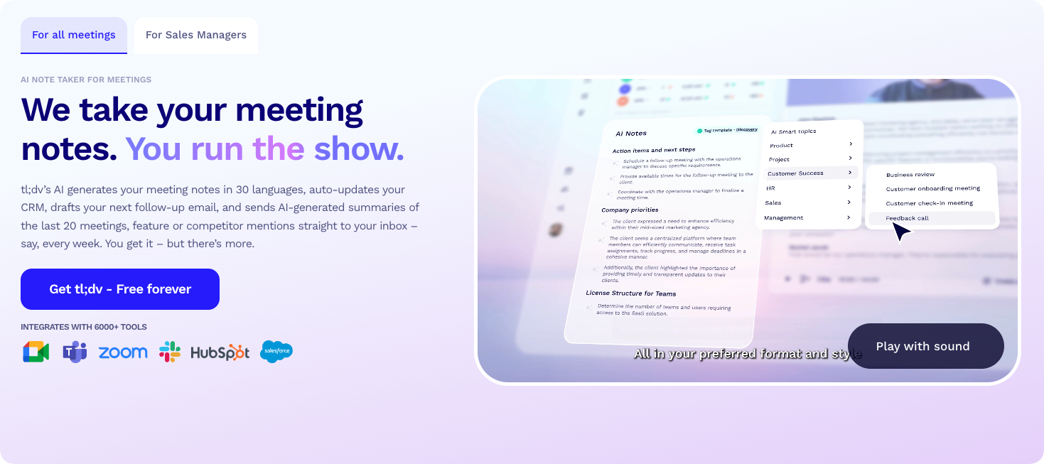 Too much admin work. Tl;dv records calls but leaves you manually updating CRMs, writing follow-ups, and creating notes. Sales reps need tools that eliminate work, not create more.