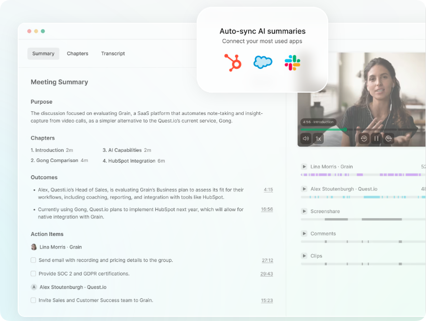 Grain has the deepest HubSpot integration with automatic deal association and workflow triggers.