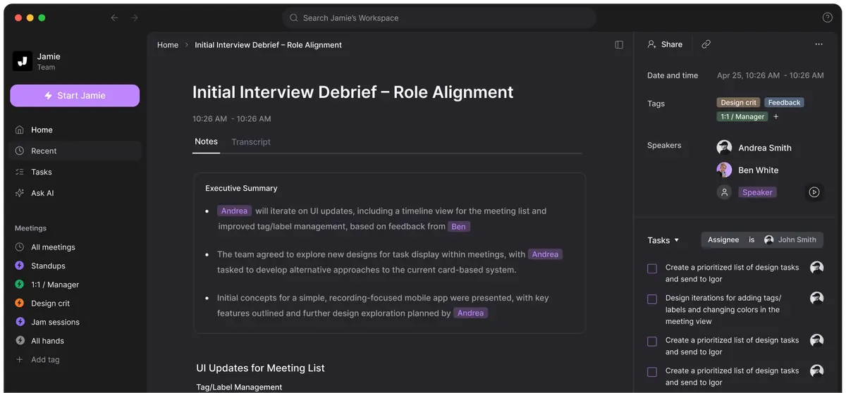 Jamie records meetings locally without sending a bot, avoiding the awkward "AI assistant has joined" announcement.