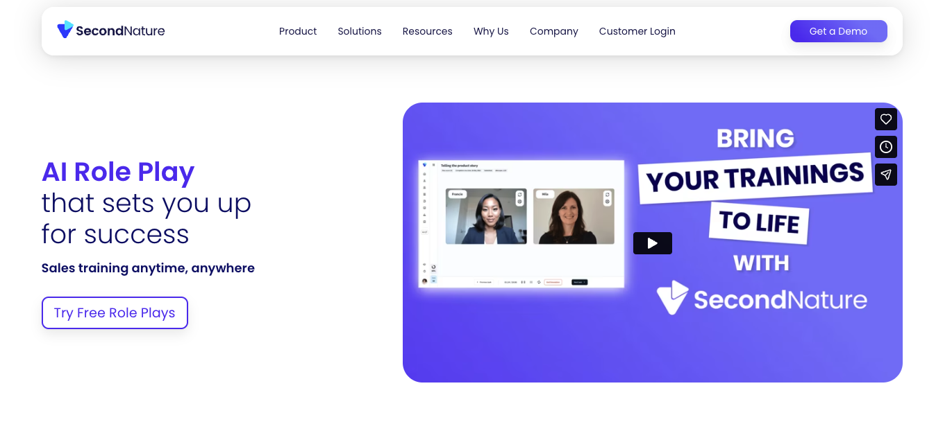 For large enterprise teams, we look at Second Nature for its structured approach to training. It offers deep, scripted scenario paths and integrates directly with your LMS. It is designed for large-team rollouts where maintaining consistent methodology across hundreds of reps is the primary challenge.