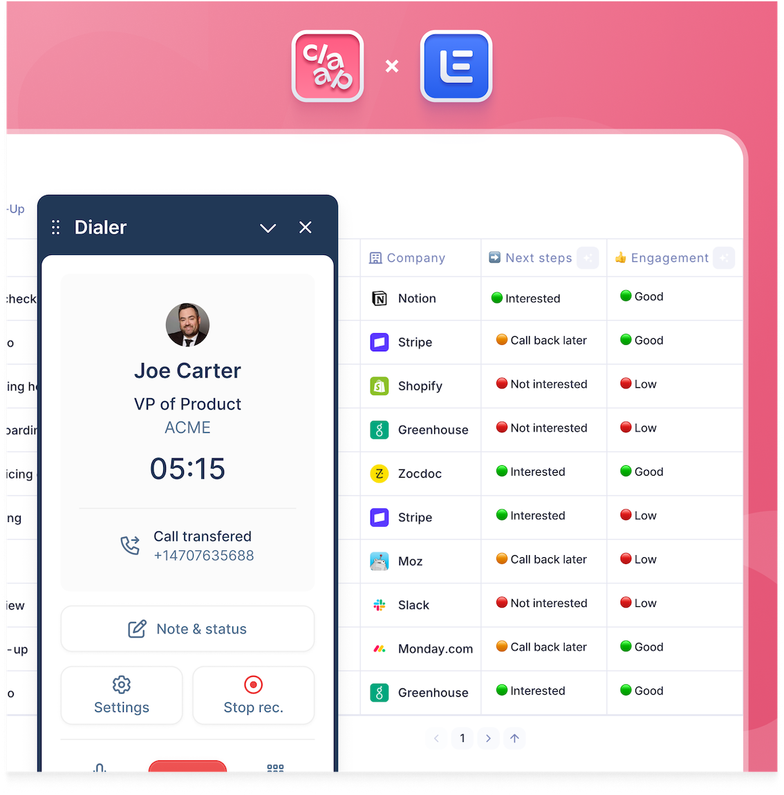 - lemlist envoie automatiquement vos appels vers votre espace de travail Claap.